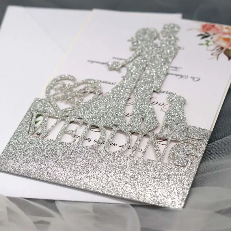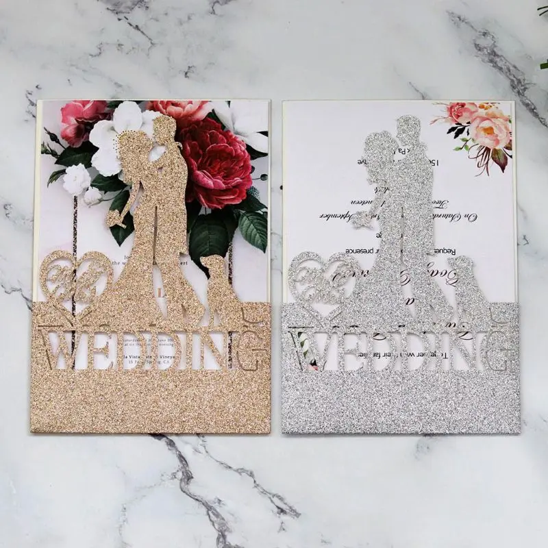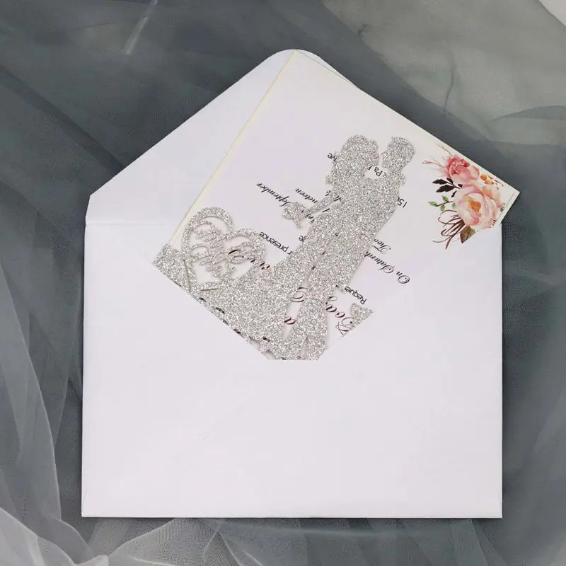 10pcs/set Glitter Laser Cut Wedding Invitations Card Invite Envelopes Kit for Engagement Personaliz