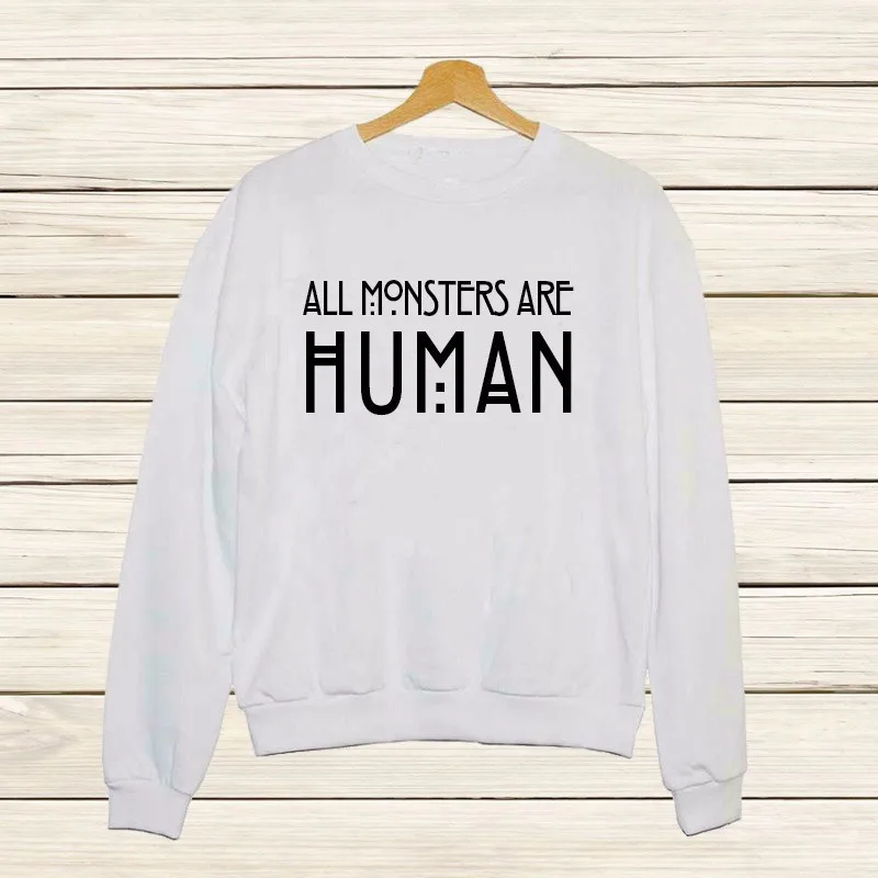 ORIGINAL Hot Selling All Monsters Are Human Lettered Printed European And American Women's Cotton Long-Sleev